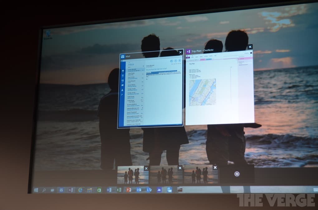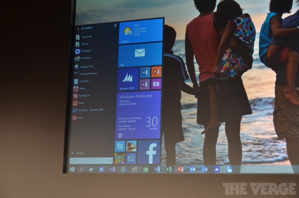 Velká část prezentace se týkala zobrazení Windows 10 na počítačích, noteboocích a tabletech. Microsoft ukázal, že bude stále k dispozici klasické desktopové prostředí známé po řadu let, v nabídce Start se však nově objevují aplikace ve dlaždicové podobě známé z Windows 8 a Windows Phone. Nepřekvapí, že si je zde každý uživatel bude moci různě přesouvat a zvětšovat či zmenšovat.
