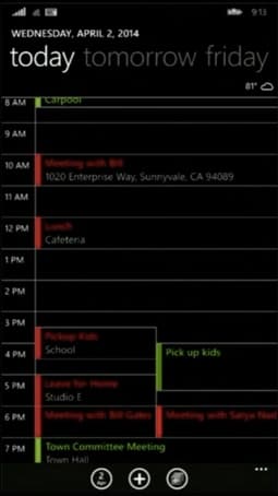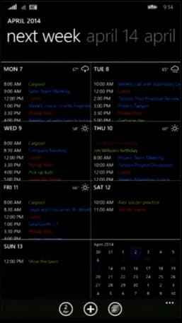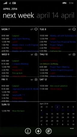 Už od prvních Windows Phone jsme Microsoftu vytýkali nedostatečný kalendář a až nyní došlo k nápravě. Nový kalendář u Windows Phone 8.1 v týdenním náhledu ukáže všechny dny týdne včetně všech událostí. Díky barevnému odlišení jednotlivých kalendářů máte vše přehledné, jak má být. Konečně!