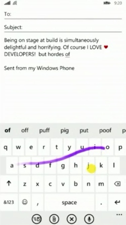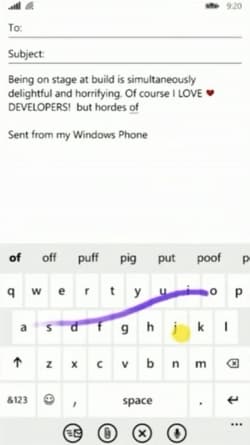 S novou klávesnicí Wordflow se dá psát tahem prstu po písmenkách ala technologie Swype. A podle Microsoftu je jeho klávesnice ještě rychlejší, můžete s ni psát doslova nejrychleji na světě jako na žádném jiném smartphonu od konkurence.