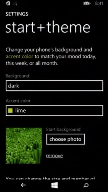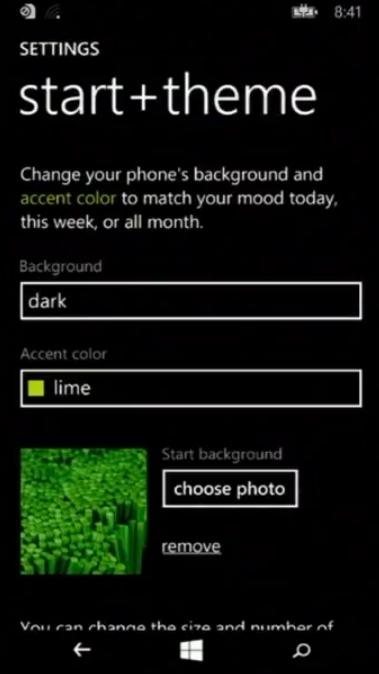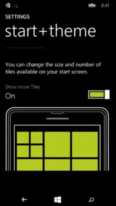Dlaždice už nebudou u Windows Phone 8.1 jen jednobarevné podle nastaveného schématu, ale budete si moci v nastavení vybrat, zda upřednostníte, aby dlaždice tvořily libovolný obrázek, tapetu. Většina dlaždic pak obsahuje část daného obrázku a dohromady tvoří osobnější obrázek. Stejně tak si může uživatel vybrat, zda bude chtít jen klasické 2 sloupce vedle sebe, nebo dá přednost rovnou 3 sloupcům dlaždic.