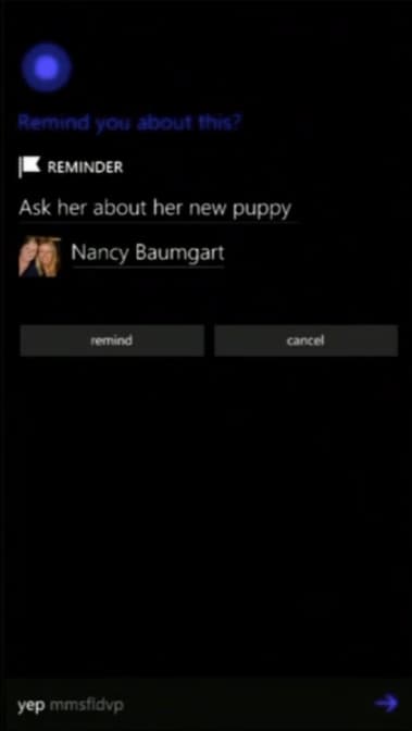 V nastavení Cortany se můžete podívat, co všechno o vás vaše asistentka ví, případně tyto informace opravit. A asistentka to není jentak ledajaká. Snaží se být opravdu nápomocna, a proto si můžete kdykoliv k libovolnému kontaktu přidat připomínku, kterou vám při prvním kontaktu s danou osobou připomene. Jako příklad, až potkáte sestru, měli byste se ji zeptat na jejího psa. Cortana vše zařídí a tuto připomínku vám podsune v ten pravý moment – ať už vám vaše sestra volá, píše na Facebooku nebo s ní máte schůzku. Velmi dobře si poradí i s kolizí událostí, jednoduše vám navrhne přesunout události tak, aby se vám žádné nekřížily.