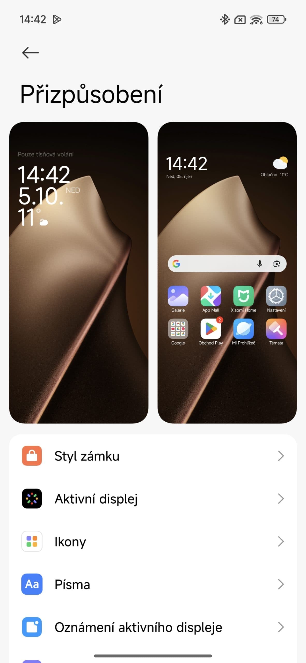 Po stránce optimalizace nemám žádnou výtku. Stejně jako k ovládání, které probíhá pomocí osvědčených gest. HyperOS 2 následně vyniká v možnostech přizpůsobení. Upravit si můžete font textu, velikost ikonek nebo jejich rozložení.
