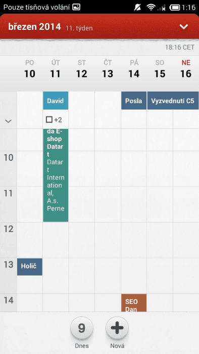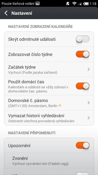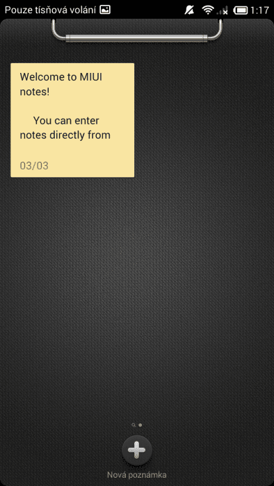 Kalendář Hongmi funkčně nevybočuje z klasických kalendářů na Android platformě a tak o něm lze říct, že je relativně přehledný, graficky povedený. Pouze trojúhelníky v jednotlivých dnech při měsíčním pohledu si výrobce mohl odpustit. To, že mám na daný den něco naplánováno mi to sice sdělí, dále ale musím jednotlivé dny otevírat. Kromě kalendáře výrobce též přibalil vlastní aplikaci na poznámky, která svojí úlohu plní více než dobře. Pokud si navíc aktivujete Xiaomi účet, Hongmi vám bude veškeré poznámky zálohovat do cloudu. Stejně tak jako kontakty, zprávy, fotografie apod. Toto je velmi příjemné, pouze škoda svázanosti s Xiaomi. S tím se ale nedá nic dělat, činí tak i větší výrobci.