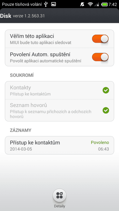 Xiaomi uživatelům servíruje dva druhy dodatkových aplikací. Nástroje a Bezpečnost. V nástrojích najdete praktickou svítilnu, kalkulačku, kompas či diktafon. V Bezpečnosti naopak naleznete AntiSpam, Antivir, vlastní řešení pro zálohu mobilu, přístup do interního cloudového řešení MiCloud apod. Lze si zde taktéž manuálně zakázat či povolit, které aplikace se mají spouštět při startu přístroje. Součástí bezpečnostní složky je tzv. MIUI Povolení, které vám umožní přehledně povolovat či zakazovat jednotlivým aplikacím přístupy ke konkretním částem systému. Perfektní! A vše jako vždy ve firemních barvách a jednotném designu.