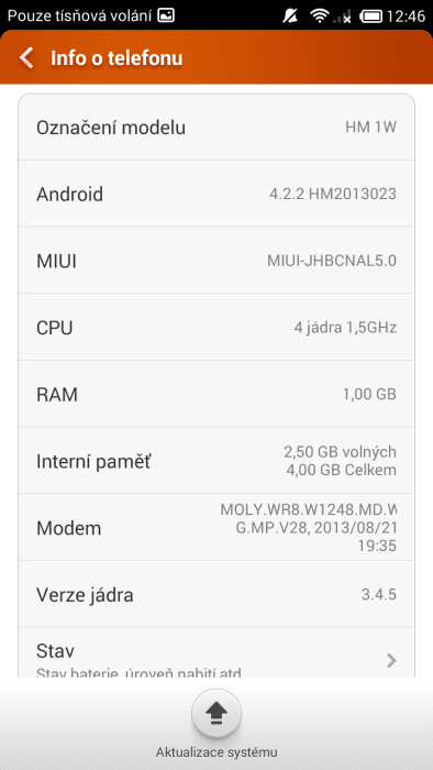 | Operační systém | Android 4.2 Jelly Bean + MIUI 5.0 |
